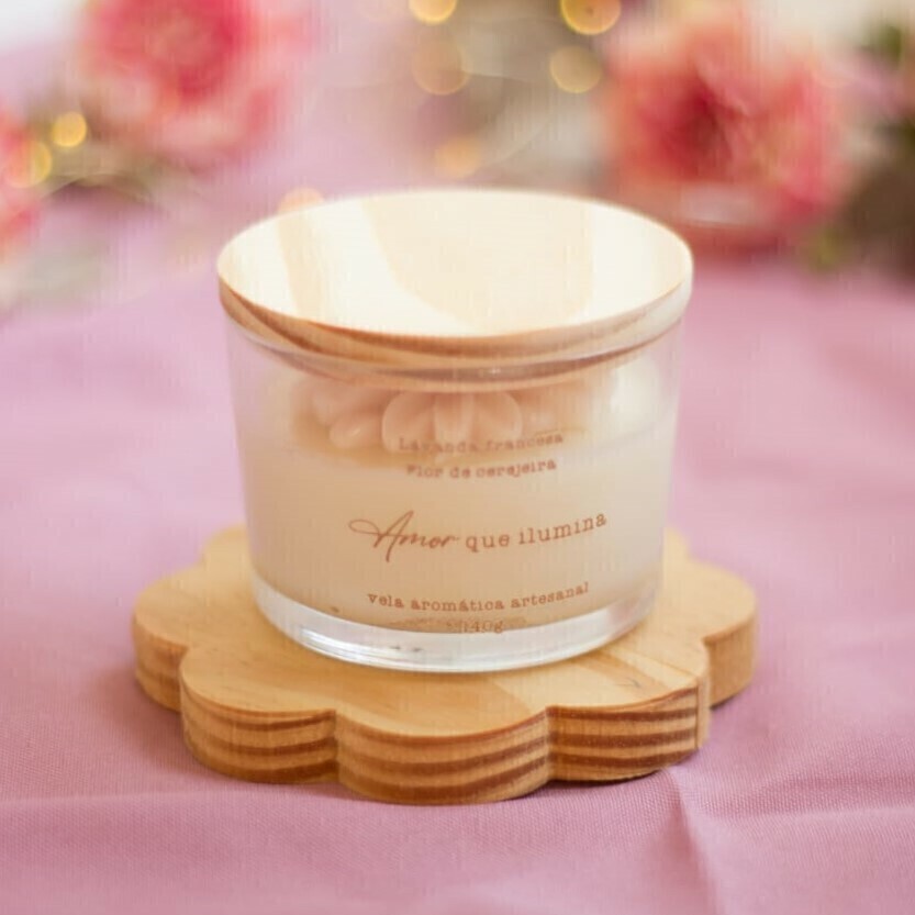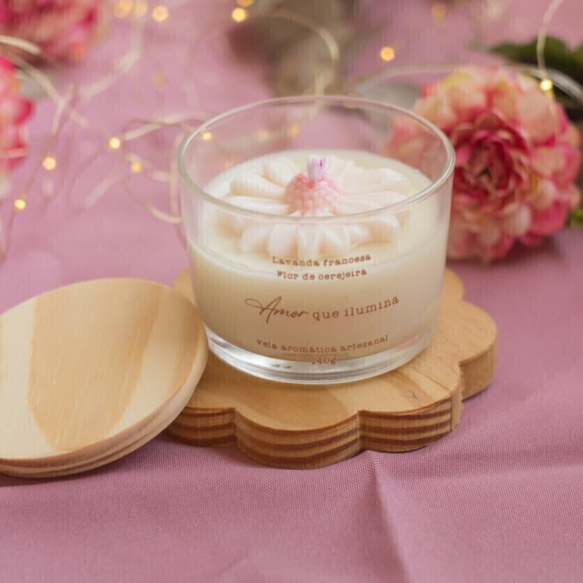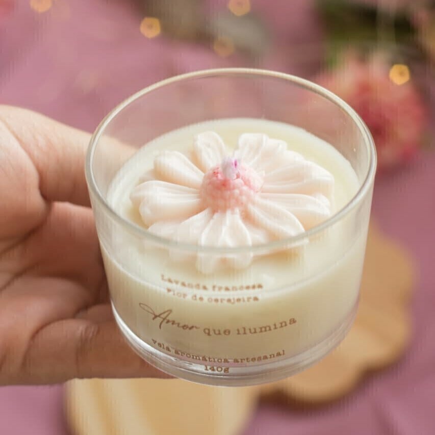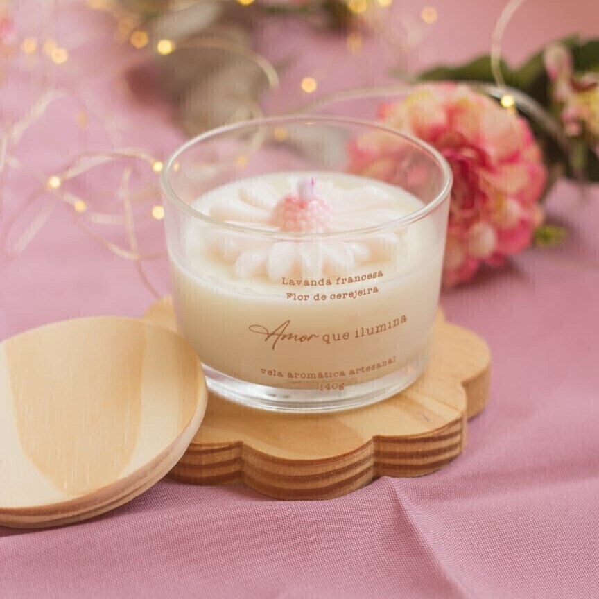 Vela Aromática "Amor que Ilumina" – Lavanda Francesa ou Flor de Cerejeira